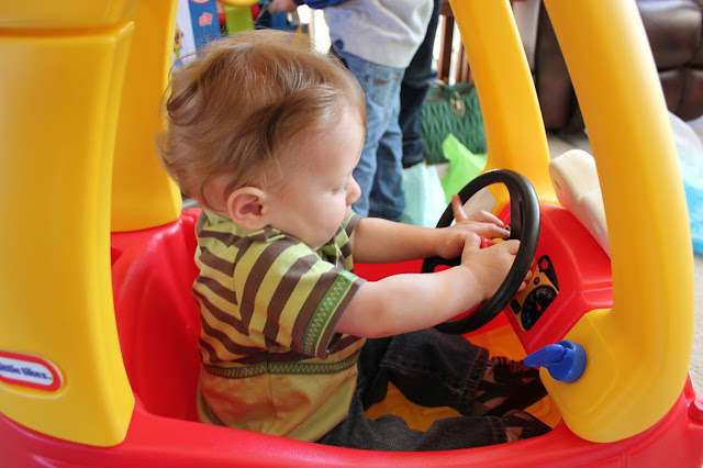 I really didn't think David would have a lot of fun at his birthday party. I mean, they say first birthdays are really for the parents and while that's true, I tried to plan something I thought David would like too. Turns out he totally loved it. He had a blast opening gifts, eating lunch and then of course smashing into his cake. He never got overwhelmed or fussy the whole party. Even afterward he took a good nap and then was ready to try out all his new toys the second he woke up. It was such a great day.  I think we all loved it.
