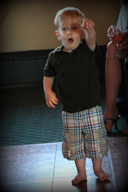 The wedding was about a half hour away in a town called Forest Lake. It was supposed to be in the back yard of the groom's parents house but it was pouring rain. Just a total monsoon! After a lot of back and forth they finally made the call to have the ceremony at the reception site, a golf course clubhouse down the road. By the time everyone got there the sky was blue and the birds were chirping. Isn't that how it always goes?! The wedding was nice, very simple and we all had a lot of fun. David and his cousin Jude (just 4 months younger than D) ran around outside like crazy goons and at one point I had to literally sprint across the fairway to catch a runaway David. We couldn't stay long because the little guy had officially reached the end of his very patient rope and was demanding a reasonable bedtime. So, we headed back and hit the hay.